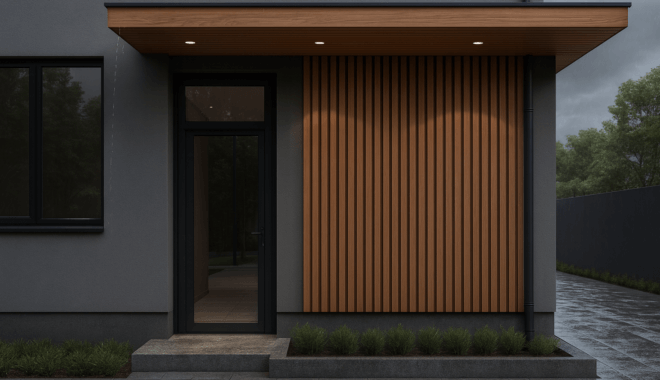 - Esthétique caractérisée par une languette non filmée coloris gris anthracite, donnant un aspect faux claire-voie